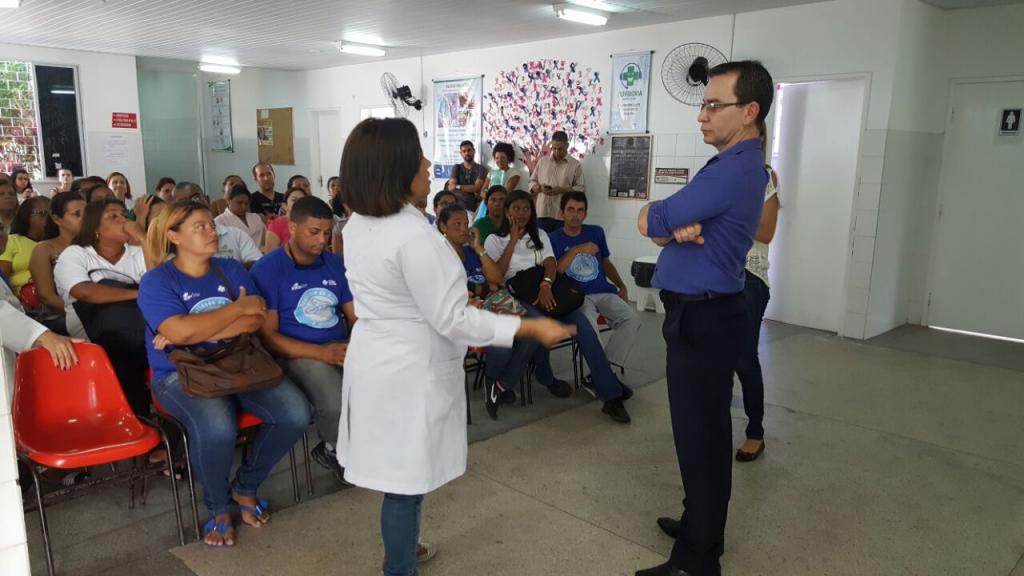 O secretário municipal da Saúde, André Sotero, se reuniu na manhã desta terça-feira, 10, com a equipe de profissionais e demais servidores da Unidade de Saúde da Família (USF) José Machado, no bairro Santos Dumont. Acompanhado da Consultora Extraordinária para Assuntos Governamentais, Ana Débora Santana e da Diretora de Atenção à Saúde, Guadalupe Ferreira, o encontro aconteceu na manhã seguinte ao assalto à unidade, ocorrido na tarde da última segunda-feira, quando dois homens armados invadiram o estabelecimento, anunciaram o crime, roubaram celulares, dinheiro e o veículo de uma funcionária.