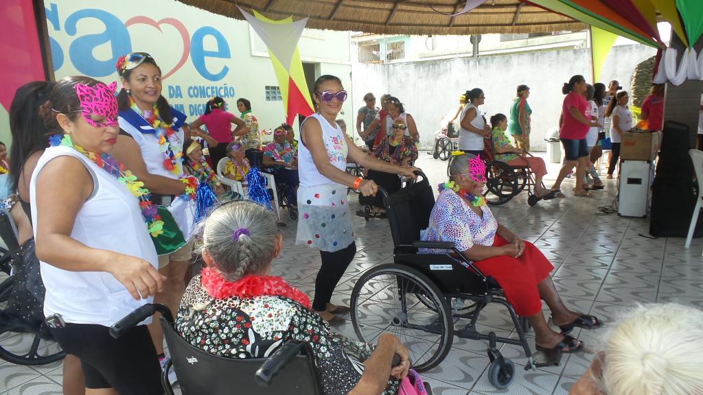 A animação tomou conta de todos. Estar em uma cadeira de rodas não foi empecilho para dançar e se divertir. A senhora Valdice Oliveira Santos, de 94 anos e há três, residente do Same, foi exemplo de alegria contagiante. “Sempre fui animada, desde jovem que brincava o carnaval na Fábrica Confiança, onde o meu falecido marido trabalhou por 40 anos. Aqui, com a ajuda das meninas girando a minha cadeira, eu ainda brinco”, empolgou-se dona Valdice que cantava todas as marchinhas de carnaval ao som da Banda da Polícia Militar, que participou pelo terceiro ano consecutivo.