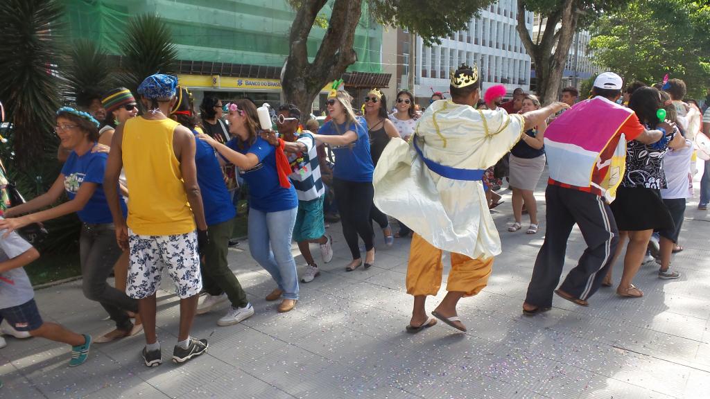 Máscaras, rostos pintados, chapéus coloridos, confetes e, claro, muita animação. Tudo isso fez parte da festa de carnaval dos usuários da Rede de Atenção Psicossocial (Reaps), da Secretaria Municipal de Saúde (SMS), realizada nesta quinta-feira, 23, na Praça General Valadão, no Centro da cidade. Os acolhidos brincaram, dançaram, tocaram instrumentos e, principalmente, se divertiram muito.