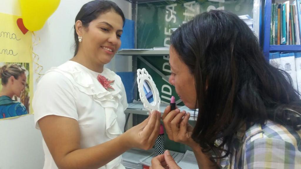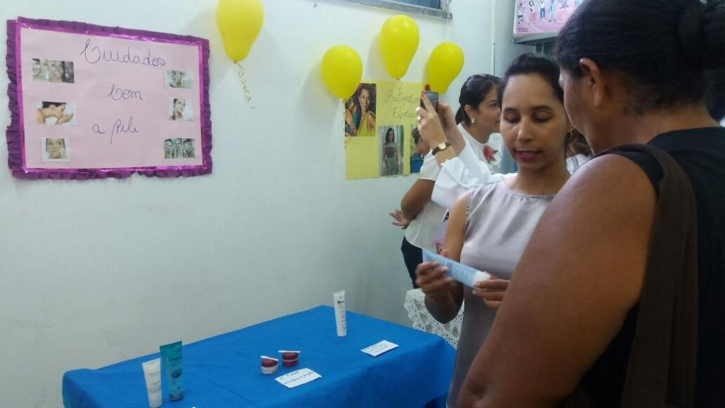 As mulheres que são atendidas pela Unidade de Saúde da Família (USF) Joaldo Barbosa, localizada no bairro América, tiveram uma manhã totalmente diferente nesta quinta-feira, 9. Em alusão ao Dia Internacional da Mulher, que foi comemorado na última quarta-feira, 8, a unidade, em parceria com o Núcleo de Apoio à Saúde da Família (Nasf), da 4° Região, realizou a “Feira da Beleza”, em que as usuárias receberam orientações de como cuidar da pele, das unhas e dos cabelos. Além disso, as mulheres puderam também conversar com uma psicóloga sobre autoestima.