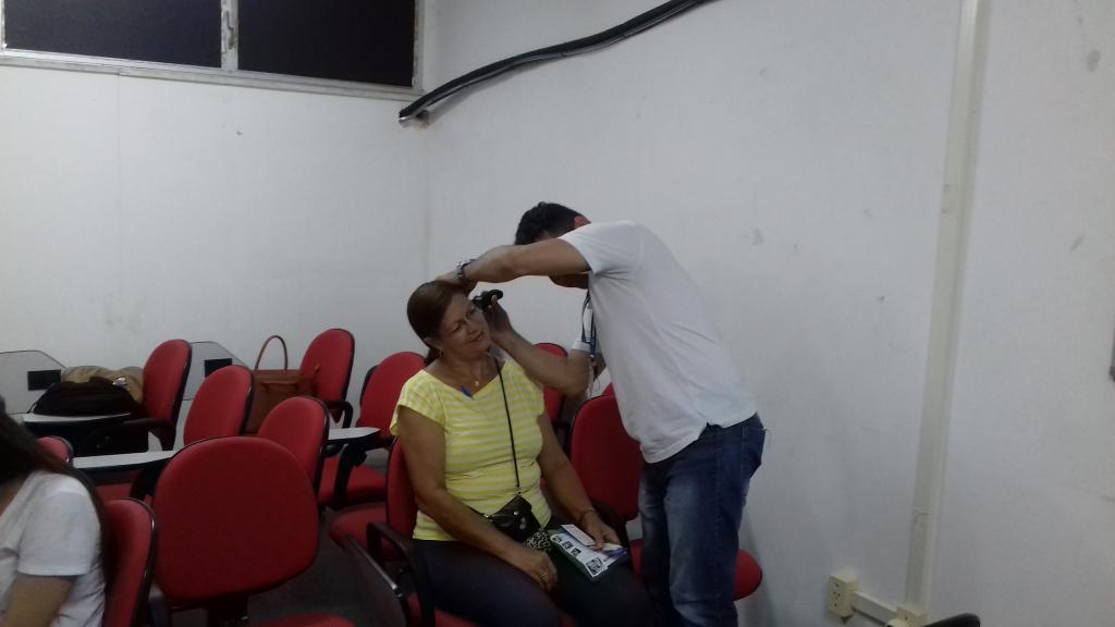 As práticas de saúde foram comandadas pela professora doutora Tereza Raquel Sena, fonoaudióloga do Centro de Referência, e aplicadas por alunos da UFS. “As ações têm dois momentos: orientação e triagem. Um grupo faz a orientação de higiene bucal, enquanto outra turma realiza a avaliação vocal, observando sintomas como rouquidão, pigarro, perda da voz, tosse seca e outros. Temos ainda um grupo avaliando a audição propriamente dita e outros estudantes realizando o exame de triagem auditiva”, explicou a professora.