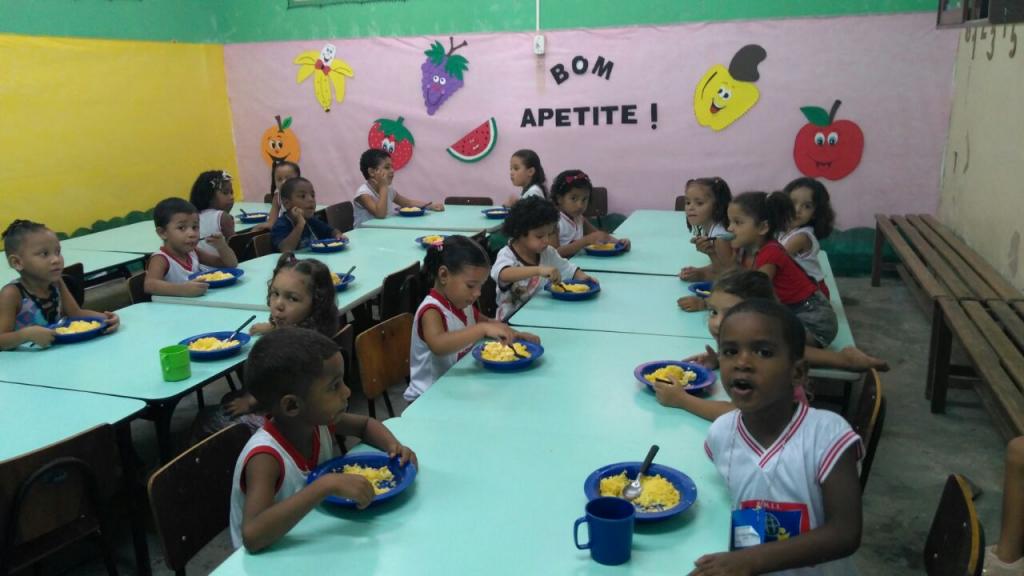Os pequenos alunos da Emei Professor João Batista, Douglas de Souza, Raissa Silva, Júlia Rauany e Everton Ventura, esperam ansiosos a hora da merenda escolar. Raissa conta que o que ela mais gosta de comer é cuscuz com leite e ovos. Júlia e Everton preferem feijão, mas o garotinho ainda completa: "gosto de feijão, mas com franguinho, pirão, arroz e suco".