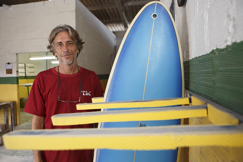 Ele relembra que no tempo das ondas "era o maior barato". "Eu trabalhava no Banco do Estado, era um horário flexível até 13h, então continuei praticando e naquela ideia de trabalhar com surfe. Fazia consertos, tinha uma oficina e fui para o Rio já imaginando que lá eu realizaria isso que estou fazendo aqui. Pensei: o eixo de trabalho é Rio/SP, se eu for para lá e conseguir algum espaço, a minha ideia já era criar uma fábrica", lembra.