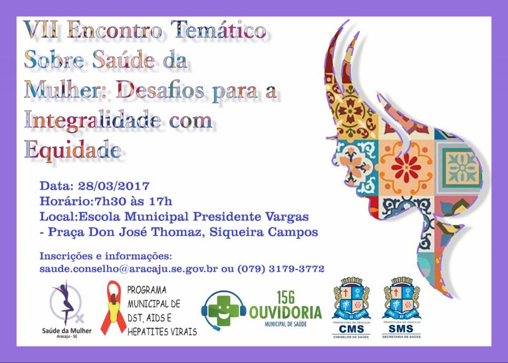Encerrando o mês em que se celebra o Dia da Mulher, a Secretaria Municipal de Saúde (SMS), por meio do Programa Saúde da Mulher, realiza nesta terça-feira, 28, o VII Encontro Temático Sobre a Saúde Da Mulher: Desafios para a Integralidade com Equidade.