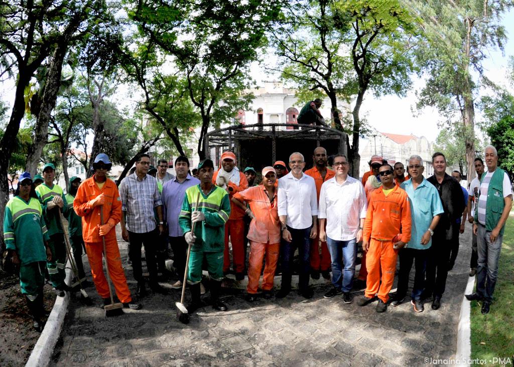 O prefeito Edvaldo Nogueira acompanhou, nesta sexta-feira (7), o mutirão de limpeza e manutenção da Praça Olímpio Campos, realizado pela Empresa Municipal de Serviços Urbanos (Emsurb). Na ação, a prefeitura demoliu três viveiros existentes no local, que estavam servindo como espaço para o uso de drogas, a prática de crimes e o acúmulo de lixo. O mutirão envolveu limpeza geral, varrição, pintura de guias, poda de árvores e jardinagem.