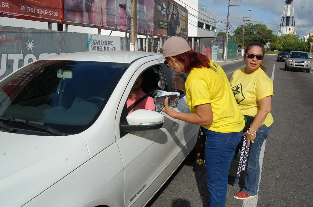 Na ação, os motoristas foram abordados pela equipe de forma lúdica com mensagens de mais consciência, menos acidentes e panfletos com dicas para curtir o feriado com segurança. Ainda no local, placas com informações de “Respeito à Vida”, “Um trânsito de paz é você quem faz”, foram fixadas em locais de melhor visibilidade para a leitura dos condutores.