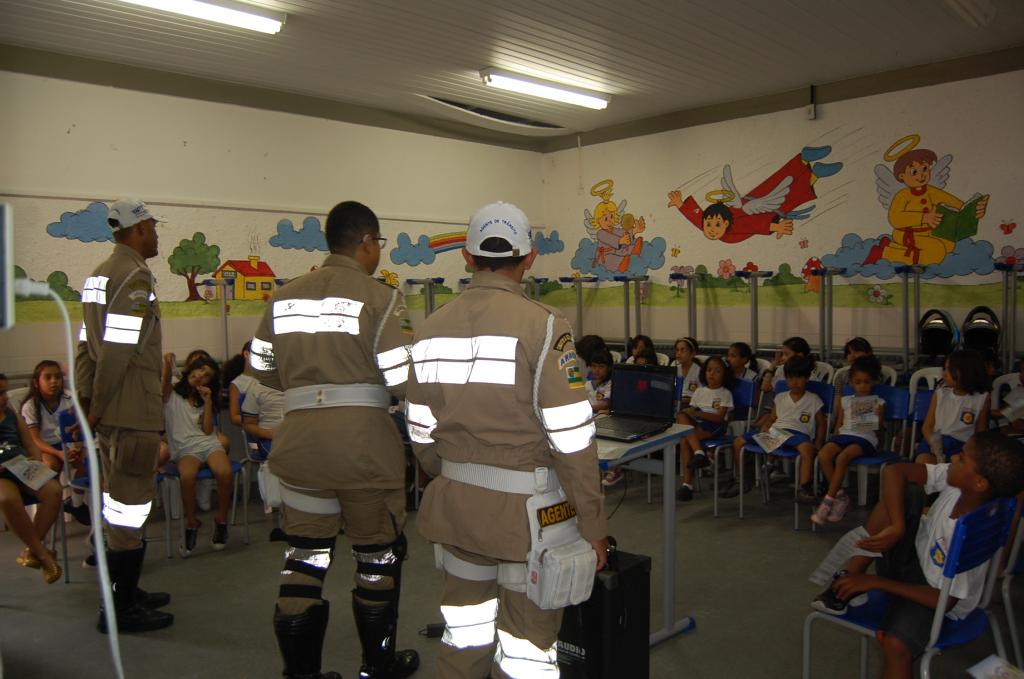 A palestra foi realizada nos turnos da manhã e tarde, direcionada aos alunos do 1° ao 3° ano. Além da conversa com os estudantes, a conscientização e os temas relativos ao trânsito também foram abordados de forma lúdica, por meio de brincadeiras, vídeos educativos e músicas apresentadas pelo grupo de teatro ‘Cones’.