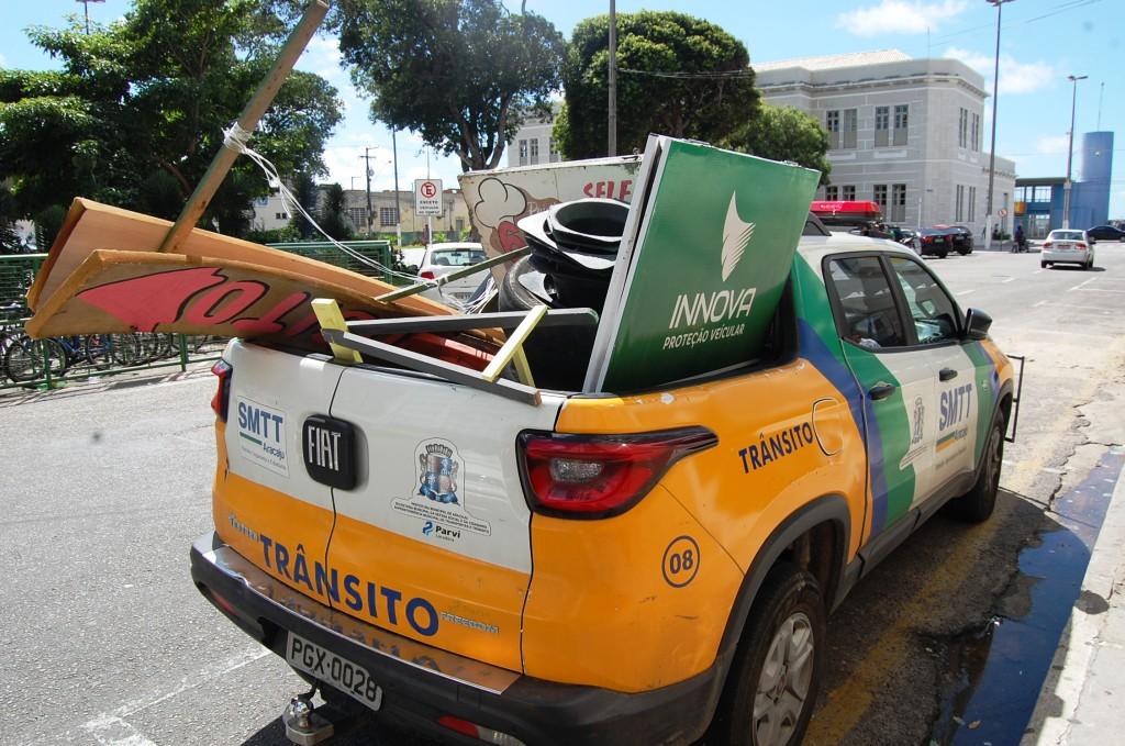 O supervisor Cardoso salienta que a abordagem aos infratores é a mais educada possível. “Sempre evitamos a multa. Conversamos com os proprietários dos cavaletes, cones e placas, explicamos o porquê da proibição, e tentamos convencê-los a recolher os objetos que estão obstruindo a via. Em casos de resistência, apreendemos os objetos, que podem ser recuperados pelos donos na sede da SMTT”, conta.