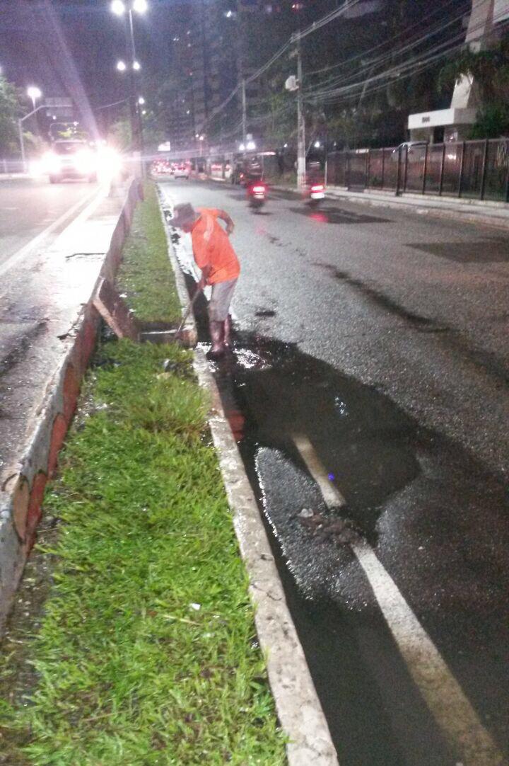 Ainda na noite da sexta, a Empresa Municipal de Obras e Urbanização (Emurb) encaminhou equipes itinerantes para as áreas mais atingidas a fim de limpar as galerias pluviais que estavam entupidas ou não comportavam a quantidade de água. Nos corredores de trânsito, o trabalho era feito simultaneamente às chuvas e a intenção era evitar ainda mais transtornos.