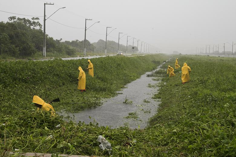 Já no conjunto Santa Tereza, no bairro Aeroporto, uma equipe com 12 agentes de limpeza fez a roçagem da margem do canal da avenida Silvério Leite Fontes, conhecida como Rota de Fuga. “Quando chove, a quantidade de água nos canais aumenta muito e, para o escoamento acontecer normalmente, devemos limpá-los com frequência”, acrescentou o coordenador.