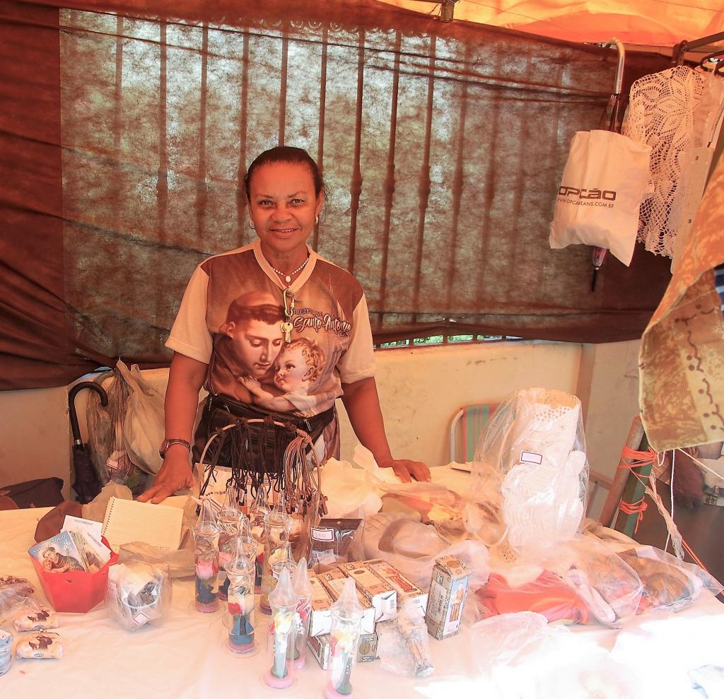"O serviço de limpeza realizado pela Emsurb é nota dez, o que falta é a colaboração da população. Todos os dias vejo logo cedo os agentes de limpeza, mas infelizmente ainda falta conscientização da comunidade" informou a integrante da Pastoral da Pessoa Idosa, Rosângela Santos Barbosa, que comercializa produtos religiosos durante a trezena.