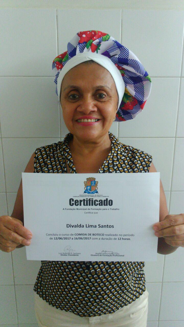 A aluna Divalda Lima, 57, é moradora do Conjunto Augusto Franco e estreante nas capacitações da Fundat. Ela trabalhava como técnica de Enfermagem, mas atualmente está aposentada, e por conta disso decidiu investir em uma nova área de atuação. "Foi muito bom porque aprendi muita coisa nova e dicas que a professora passou, aprendi a fazer o camarão empanado fiz em casa com molho rosé e deu certo", diz Divalda, que já fez o curso de Cozinheiro no Serviço Nacional de Aprendizagem Comercial (Senac). "Sempre gostei de cozinha porque me dá prazer cozinhar, meu filho tem um restaurante e segunda-feira começará ajudá-lo lá", comenta a aluna que também pensa em criar o próprio negócio.