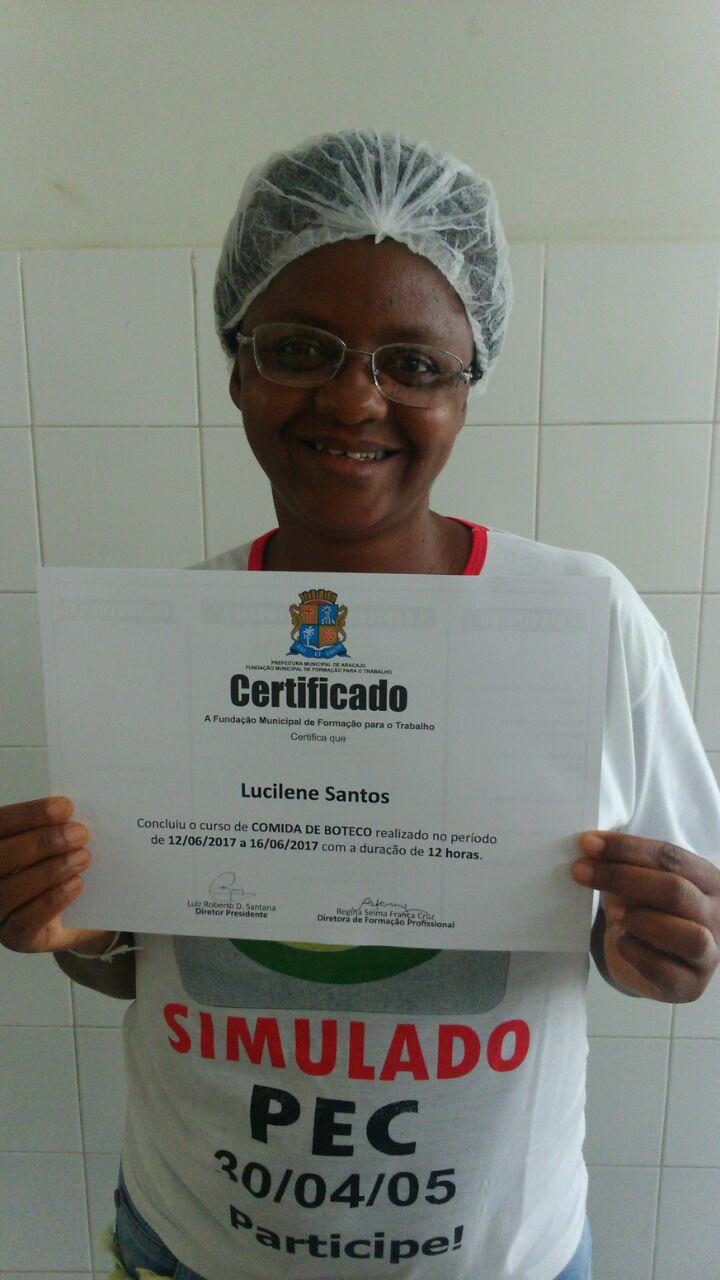A aluna Lucilene Santos, 46 anos, mora no Bugio e no momento está desempregada. Ela esteve três anos fora do mercado de trabalho para cuidar da mãe e da tia que estavam doentes. Ela já vende artesanato na própria residência, mas deseja continuar fazendo mais cursos e montar o próprio negócio nas áreas artesanais e alimentícias. "Amei, o curso foi ótimo do início ao fim, a professora é dedicada, colocamos a mão na massa, eu não tinha muitos dotes culinários e as habilidades e técnicas que foram passadas me ajudaram muito", conclui Lucilene, pensando em começa a vender os petiscos na vizinhança.