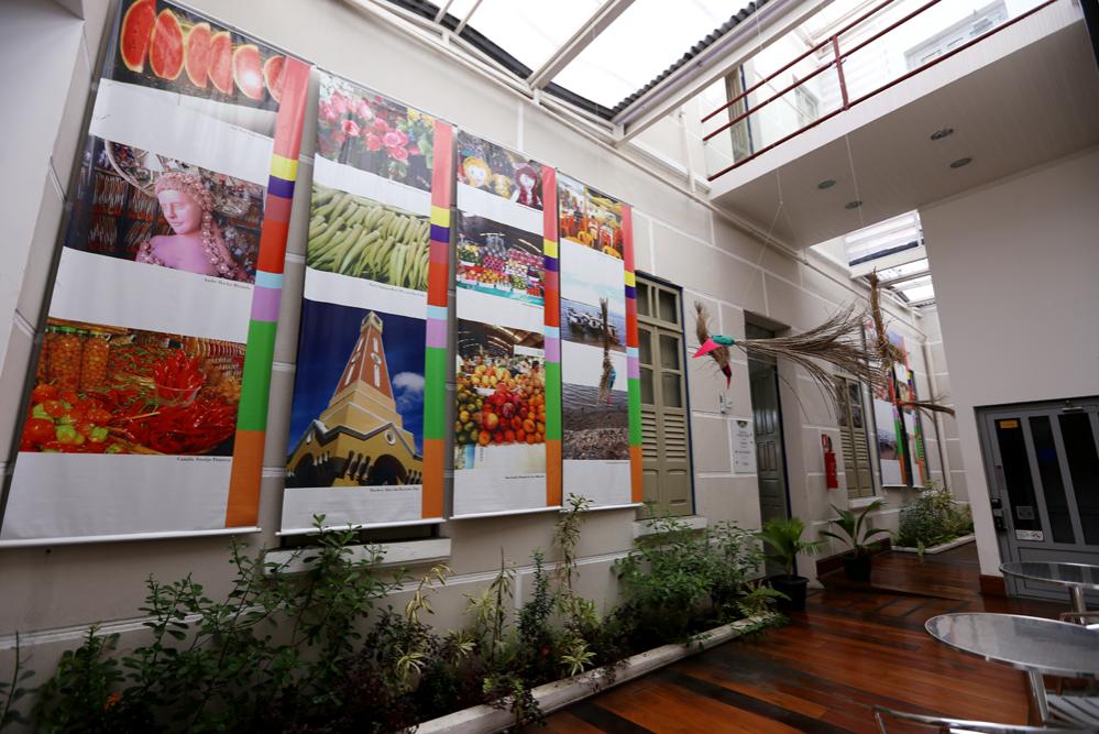 Num salão mais amplo, exposições temáticas se revezam. Até o dia 30 deste mês estará em cartaz a mostra "Cheiro, Cor e Baião. Viva São João".