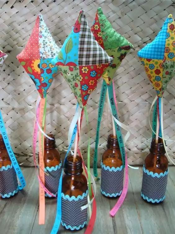 Neste mês de junho, período de festejos juninos, elas realizam o trabalho de forma temática, criando, assim, diversos produtos com artefatos específicos. Valéria e Tomásia utilizam palhas de coqueiros, latas, retalhos de tecidos, bambus, e todos esses materiais vêm do sítio delas. E, segundo Valéria, os processos de criações desses produtos são bem simples.