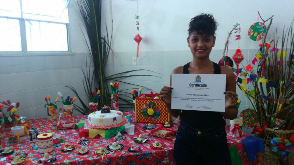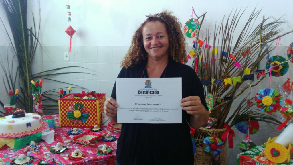 Poder ganhar uma renda extra e ainda contribuir para a preservação do meio ambiente. Esta foi a proposta dos cursos de Decoupage em Vidro (30h) e Material Reciclado (30h) oferecidos pela Fundação Municipal de Formação para o Trabalho (Fundat). Com a proximidade dos festejos juninos, as capacitações também estiveram direcionadas a ensinar produções de peças artesanais decorativas alusivas à época festiva. Os cursos foram ministrados na Unidade de Qualificação Profissional José Joaquim dos Santos, situada no bairro Coroa do Meio e no Centro de Produção e Unidade de Qualificação, localizada no bairro 17 de Março, respectivamente, e foram encerrados na tarde desta segunda-feira, 19.