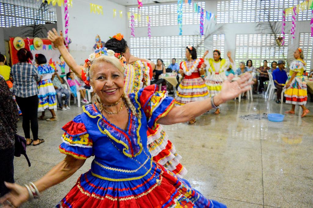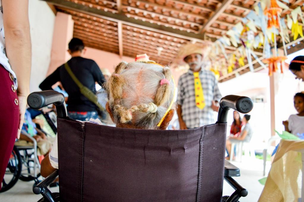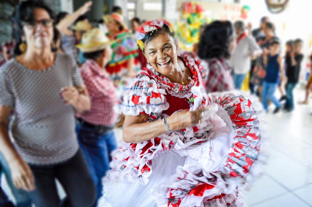 Isabela Cardoso, usuária do equipamento, contou como estava se sentindo durante a festa. Beneficiária do Centro Dia, ela esteve em todas as comemorações e disse não perder uma sequer. "Eu amo vir para cá. Vim de Rainha do Milho e quero dançar muito forró. Eu amo quando tem festa porque eu me divirto com meus amigos!", conta.