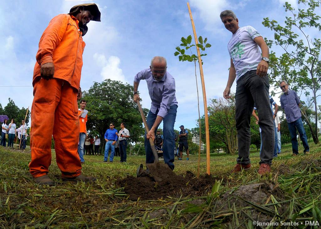 A prefeitura de Aracaju deu, na manhã desta sexta-feira, 7, um importante passo no projeto de arborização do município. O prefeito Edvaldo Nogueira iniciou, acompanhado de técnicos da Secretaria Municipal de Meio Ambiente e de servidores da Empresa Municipal de Serviços Urbanos, o plantio de 500 mudas no Parque Augusto Franco, mais conhecido como Sementeira. A ação integra o Plano Municipal de Arborização Urbana de Aracaju, cuja meta é realizar o plantio de 40 mil árvores na cidade em quatro anos.