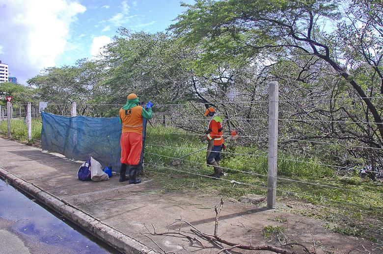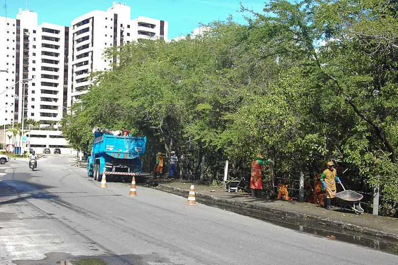 Os agentes da Empresa Municipal executaram também a limpeza com roçadeira mecanizada no entorno do manguezal. Ainda de acordo com o coordenador, os serviços serão concluídos até o próximo sábado, 15.
