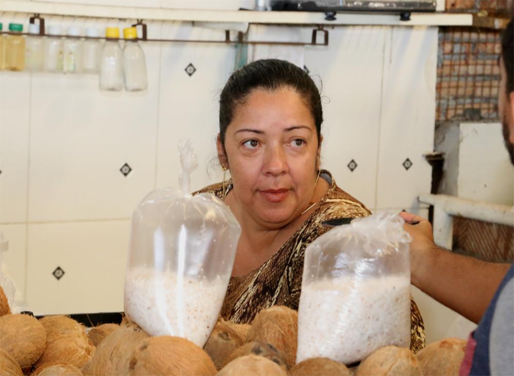 Keily Pereira é proprietária de um box e vende cocos há um ano. Ela reconhece a importância da limpeza do lugar. "Como são muitos produtos juntos, isso traz inseto, tem que ser mantido limpo mesmo. Isso atrai o cliente, que se sente mais seguro e a gente só tem a crescer", deseja a comerciante.