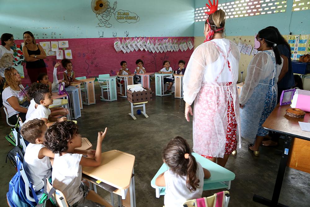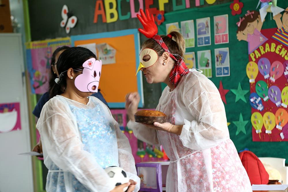 Na atividade, a fonoaudióloga Arlene Damasceno encena o personagem de uma galinha que vive um conflito com uma porquinha representada pela fisioterapeuta Nadilene Carvalho. A situação narrada pela psicóloga Denise de Souza faz alusão ao convívio em sociedade e, assim, enquanto as crianças acreditam que estão diante de apenas mais um conto, a psicologia está sendo aplicada pensando no futuro.