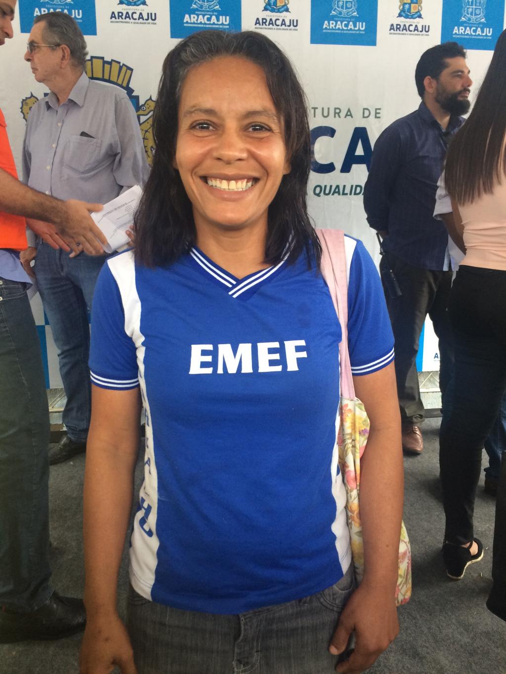 Dona Ana Maria Santos tem 76 anos, e há 60 é moradora da localidade. Ela chegou cedo e, mesmo com chuva, fez questão de dizer o que a motivou a sair de casa. "Não tinha chuva que me impedisse de vir aqui hoje ver essa maravilha. Aqui a gente ensaiava a quadrilha 'Apaga a Fogueira', que já tirou muita gente das drogas aqui. Foi dentro dessa escola que se fez a história de muita gente dessas comunidades, então eu estou aqui com o coração cheio de alegria por ver o prefeito e a secretária fazerem o que nenhum prefeito fez", conta.