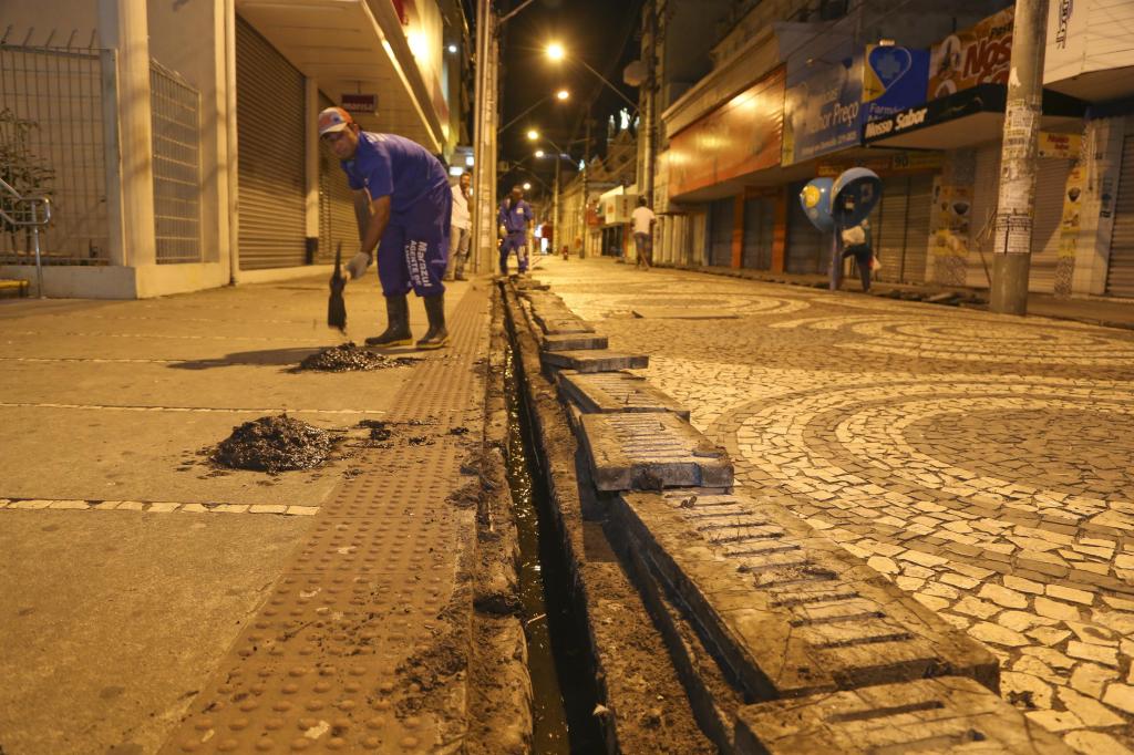 Na rua João Pessoa, o trabalho começou, simultaneamente, nas duas extremidades e deve alcançar toda a extensão do calçadão nos próximos dias. Em seguida, a microdrenagem do calçadão da rua Laranjeiras passará por manutenção e, assim, tanto a drenagem como a mobilidade das pessoas serão atendidas.