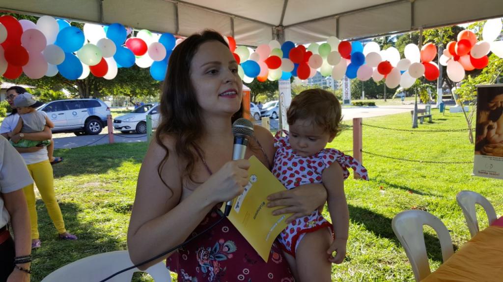 Durante o evento, muitas mães usaram o microfone para falar de suas experiências com a amamentação. Thaís Carvalho, professora de Inglês, foi uma delas. Emocionou a todos contando como superou seus bloqueios em prol do amor incondicional que sente pela filha Isabela. "Quando comecei a amamentar minha filha eu achava que tinha que esconder meu seio com um lenço pra ninguém ficar falando por aí que estava me expondo. Mas depois me dei conta de que eu precisava me preocupar apenas com a saúde da minha filha e não com que os outros estavam pensando, foi a partir daí, e contando com o apoio da família e do meu marido, que eu superei a vergonha de amamentar em público. Amamentar pra mim é a certeza de que estou dando o melhor de mim para minha filha, é a certeza de que ela está recebendo amor liquido".