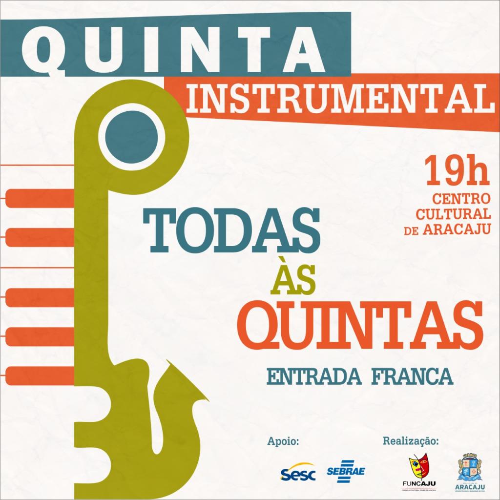 Nesta quinta-feira, 10, o amante da boa música tem um compromisso imperdível: Quinta Instrumental, o mais novo projeto desenvolvido pela Prefeitura Municipal de Aracaju, através da Fundação Cultural Cidade de Aracaju (Funcaju). Todas as quintas-feiras, sempre às 19h, artistas de Sergipe - de estilos diversificados - se apresentarão no Centro Cultural de Aracaju (antiga Alfândega). Até dezembro, a Funcaju promoverá cerca de 20 shows com artistas locais.
