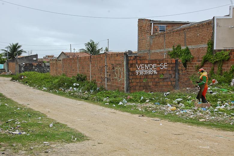 Uma das maiores dificuldades das equipes não é retirar a vegetação, mas o lixo jogado indevidamente pela população. São sacolas de lixo doméstico, copos e garrafas plásticas descartados de forma irregular. “Isso faz com que o serviço seja mais demorado, pois o vento espalha os sacos plásticos pelas ruas e o lixo acaba por entranhar no mato”, explicou o coordenador de Manutenção e Vias Públicas da Emsurb, Everaldo Ferreira. De acordo com a programação da Diretoria de Operações, as equipes devem concluir o serviço no loteamento até o final desta semana.