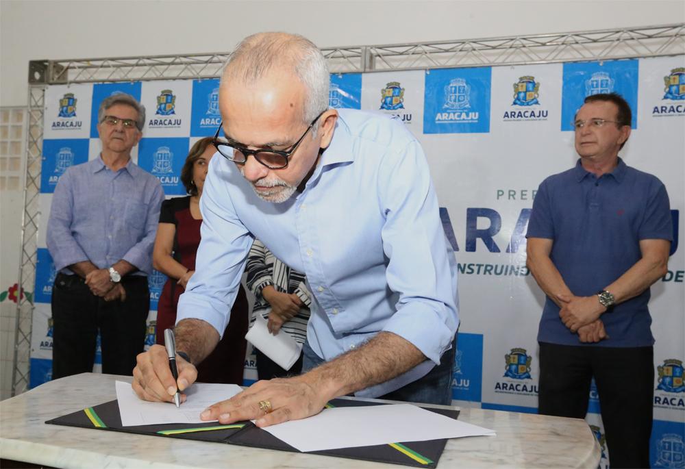 O prefeito Edvaldo Nogueira assinou, na manhã desta quarta-feira, 23, o termo de compromisso que ampliará o funcionamento do programa Saúde na Escola para 53 unidades de ensino da rede municipal. O projeto, que integra ações das secretarias municipais da Educação e da Saúde, garantirá uma série de ações de prevenção, promoção e avaliação das condições de saúde dos estudantes. A solenidade de assinatura do termo ocorreu na Escola Municipal de Ensino Fundamental João Paulo II, no bairro Santa Maria, uma das unidades beneficiadas pelo programa, cujo investimento anual é de R$ 390 mil.
