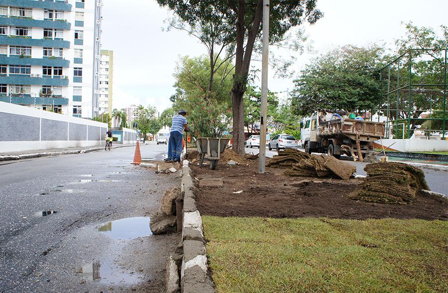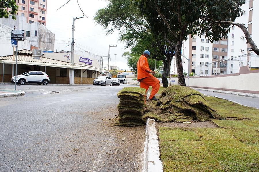 Esta semana, tanto a Emurb quanto a Empresa Municipal de Serviços Urbanos (Emsurb) realizaram um trabalho integrado na avenida Acrísio Cruz, bairro 13 de Julho, na recuperação do canteiro central da via pública. O trabalho se concentrou na manutenção dos meio-fio e na aplicação de um novo material composto por gramíneas que embelezarão toda a extensão da avenida.