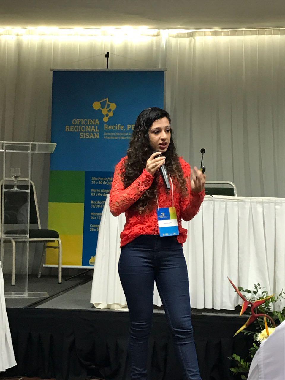 Para compartilhar a rotina dos espaços mantidos pela secretaria e explicar como atividades simples podem transformar a qualidade da comida ingerida, além de participar da mesa "Promoção da Alimentação Adequada e Saudável", a nutricionista Tatiana Canuto palestrou nesta sexta-feira, 1º de setembro, na Oficina Regional do Sistema Nacional de Segurança Alimentar e Nutricional (SISAN/Nordeste), em Recife (PE). O tema foi a utilização de um imagético com os usuários do Centro Dia, unidade pública especializada que atende jovens e adultos com deficiência, por conta de um convite feito pelo Ministério do Desenvolvimento Social (MDS) à Secretaria da Assistência de Aracaju.