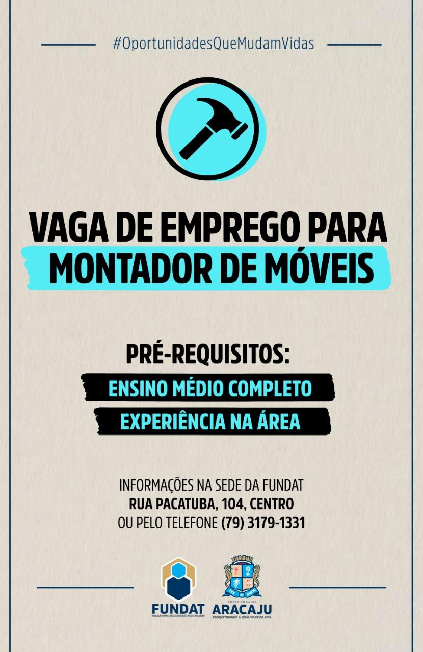 A Fundação Municipal de Formação para o Trabalho (Fundat), por meio da Agência do Trabalhador, anuncia que está com oportunidade de emprego destinada à função de montador de móveis. Para participar do processo de seleção, é necessário ter Ensino Médio Completo e experiência na área.