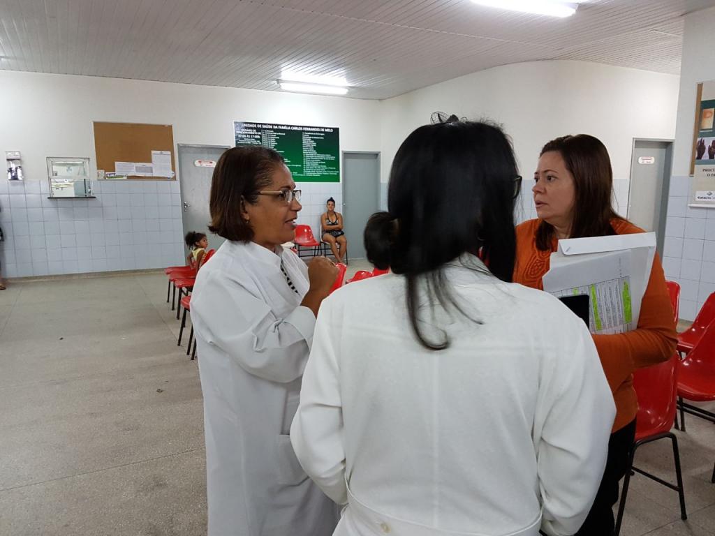 Nas duas unidades visitadas hoje, a secretária Waneska Barbosa percorreu todas as salas e também conversou com os trabalhadores. Ela foi acompanhada pela diretora de Atenção à Saúde, Ana Márcia Menezes, pela diretora do Departamento Administrativo Financeiro da SMS, Mônica Passos, pela coordenadora da Rede de Atenção Primária, Monalisa de Oliveira Fonseca, e pela coordenadora de Infraestrutura Núcleo de Serviços (Nuser), Carla Fonseca.