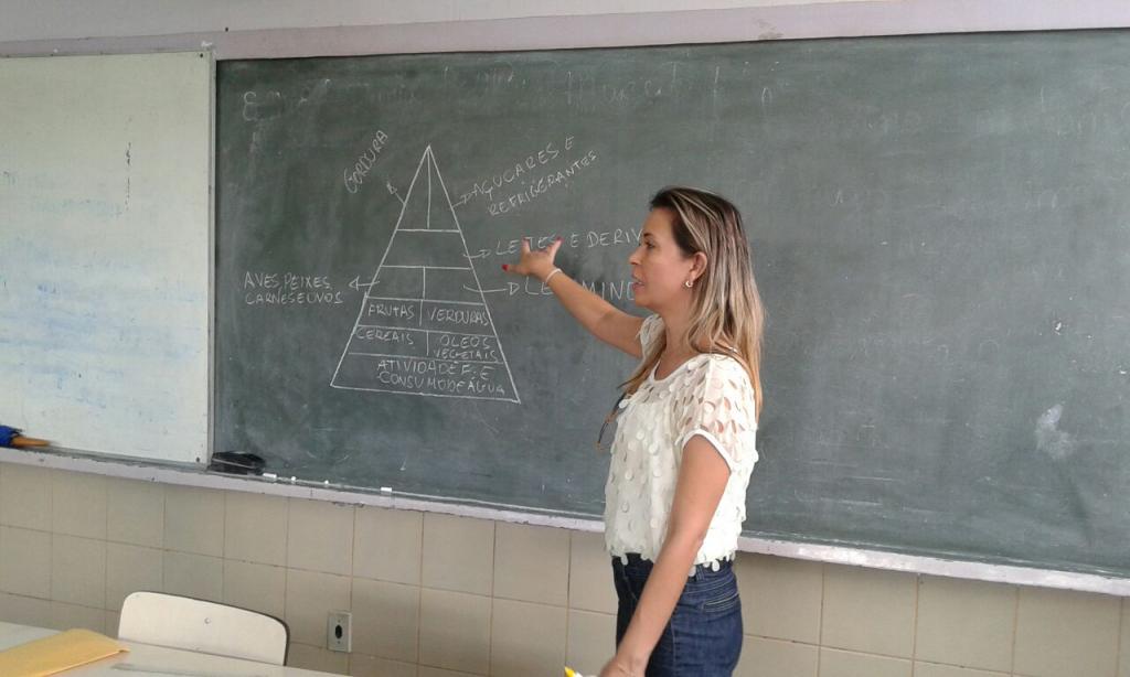 Estudantes aprendem sobre pirâmide alimentar em Projeto Alimentação Saudável