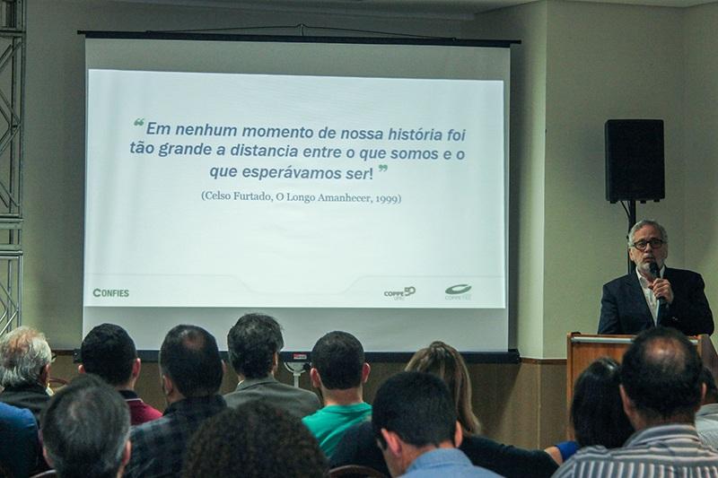 “Inovação no Brasil e sua restrições” foi o tema da palestra de Fernando Peregrino, presidente do Conselho Nacional das Fundações de Apoio às Instituições de Ensino Superior e de Pesquisa Científica e Tecnológica (Confies), com 35 anos de atuação na área. Perguntado sobre o ambiente da pesquisa em tecnologia e inovação no país, não enganou. “Muito ruim. Primeiro porque faltam recursos, os cortes foram brutais na área da pesquisa; segundo, o excesso de burocracia. O Estado está repleto de instrumentos burocráticos que não se adaptam às atividades de pesquisa; por fim, a política macroeconômica, que favorece mais ao capital financeiro que ao produtivo. A indústria no Brasil tem sido desfeita. Hoje temos um patamar industrial semelhante ao ano de 1947. A contribuição do PIB industrial de hoje, é igualzinho ao de 1947”, revelou, apresentando números desoladores. “O Brasil é a 9ª economia no mundo, 63º em ciência, 79º IDH, 81º em competitividade, 116º em burocracia e o 69º em inovação”.