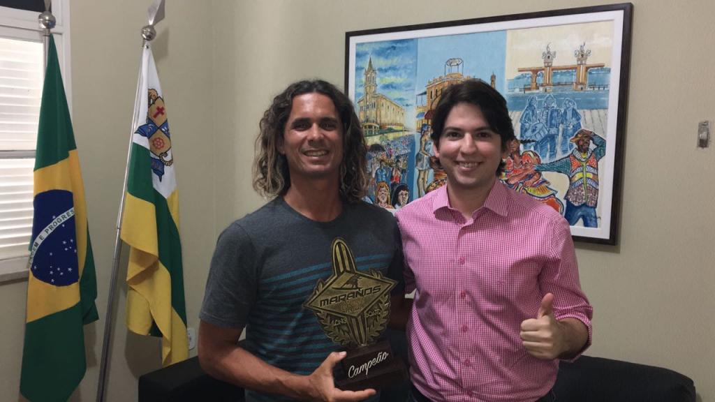 O secretário da Juventude e do Esporte, Jorge Araújo Filho, recebeu a visita do surfista sergipano profissional Robson Fraga que compartilhou uma importante conquista. No último final de semana, na praia de Maracaípe, no município de Ipojuca, no Estado de Pernambuco, Robson ganhou o título de campeão brasileiro de surfe na categoria máster. Durante a visita, o surfista mostrou o troféu conquistado e falou o título do campeonato.