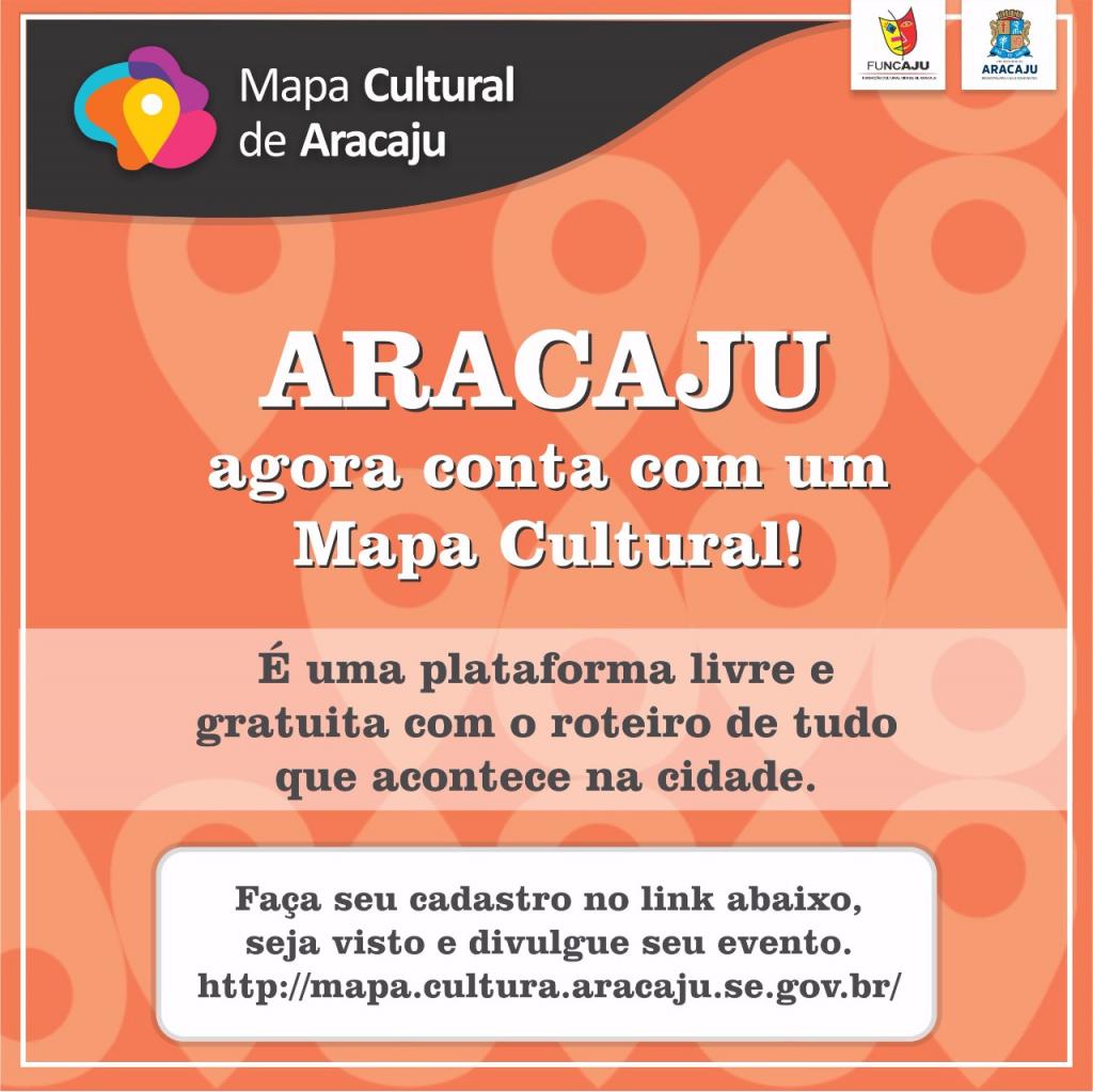 Aracaju é agora passa a contar com o Mapa Cultural, plataforma livre, gratuita e colaborativa de mapeamento que ajudará os aracajuanos e turistas a se programarem. O aplicativo online, idealizado pelo Ministério da Cultura, em parceria com o Instituto TIM, está operando e entra na fase de inscrições. Por isso, a Prefeitura Municipal de Aracaju, através da Fundação Cultural Cidade de Aracaju (Funcaju), está convocando os agentes culturais da capital sergipana para se cadastrarem.