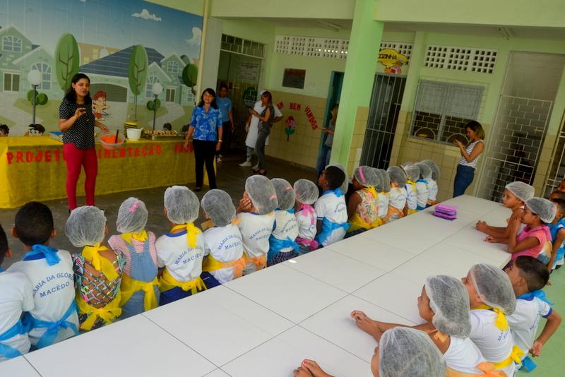 Aprender sobre alimentação saudável na escola é uma forma de sensibilizar e conscientizar crianças e jovens para uma melhor qualidade de vida. É com esse objetivo que a Secretaria Municipal da Educação (Semed), através da Coordenadoria de Alimentação Escolar (COAE), desenvolve ações que promovem o contato dos estudantes da rede com informações sobre a importância de uma alimentação balanceada. Nesta sexta-feira, 29, a Escola Municipal de Ensino Fundamental (Emef) Maria da Glória Macedo, realizou mais uma ação do “Projeto Alimentação Saudável”.