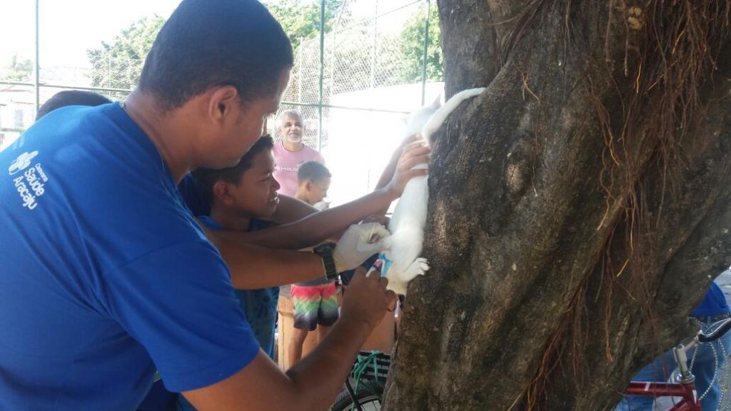 Acordar cedo neste sábado, 30, para vacinar contra a raiva os cães e gatos foi o compromisso de muitos cidadãos aracajuanos, que aproveitaram a terceira etapa da Campanha de Vacinação Antirrábica, realizada pela Secretaria Municipal da Saúde (SMS), através do Centro de Controle de Zoonoses (CCZ). A ação, que acontece hoje, se estende até às 17h, nos pontos fixos da 3ª e 4ª regiões de saúde, que compõem os bairros América, Siqueira Campos, Luzia, Ponto Novo, Grageru e Inácio Barbosa. No próximo dia 7 será o quarto e último para vacinar os animais domésticos durante a mobilização.