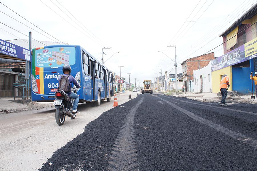 Antes deste recapeamento, entretanto, a Emurb fez um levantamento dos pontos danificados e obstruídos da rede de drenagem e substituiu aproximadamente 50 manilhas, aumentando a capacidade de vazão para os períodos chuvosos. Diariamente, nestes meses de gestão, as galerias pluviais passaram por algum tipo de manutenção. Outro importante trabalho que antecedeu o recapeamento foi o patrolamento e terraplenagem dos locais mais danificados e onde o asfalto havia sido removido, possibilitando a criação da base necessária para a aplicação da camada asfáltica.