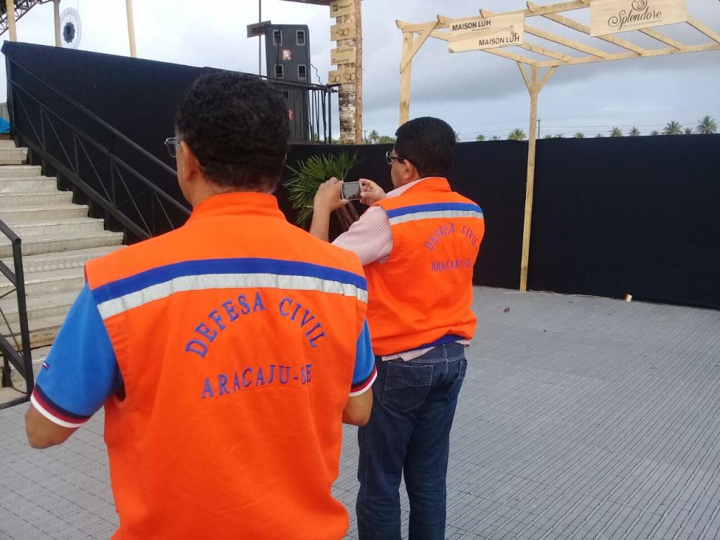 Segundo o coordenador da Defesa Civil de Aracaju, capitão Silvio Prado, o papel do órgão, nesses eventos, é fazer a avaliação de risco dessas estruturas, além de verificar os aterramentos relacionados à rede elétrica, inclusive a do gerador e da iluminação. A proteção contra descargas atmosféricas também é alvo da fiscalização. "De maneira geral, nós avaliamos o travamento da estrutura montável e desmontável, recolhemos uma anotação de responsabilidade técnica, inclusive com o teste de carga. Observamos, também, se o aterramento da parte elétrica está sendo feito e se a iluminação e gerador estão em conformidade com as normas de segurança", explicou.