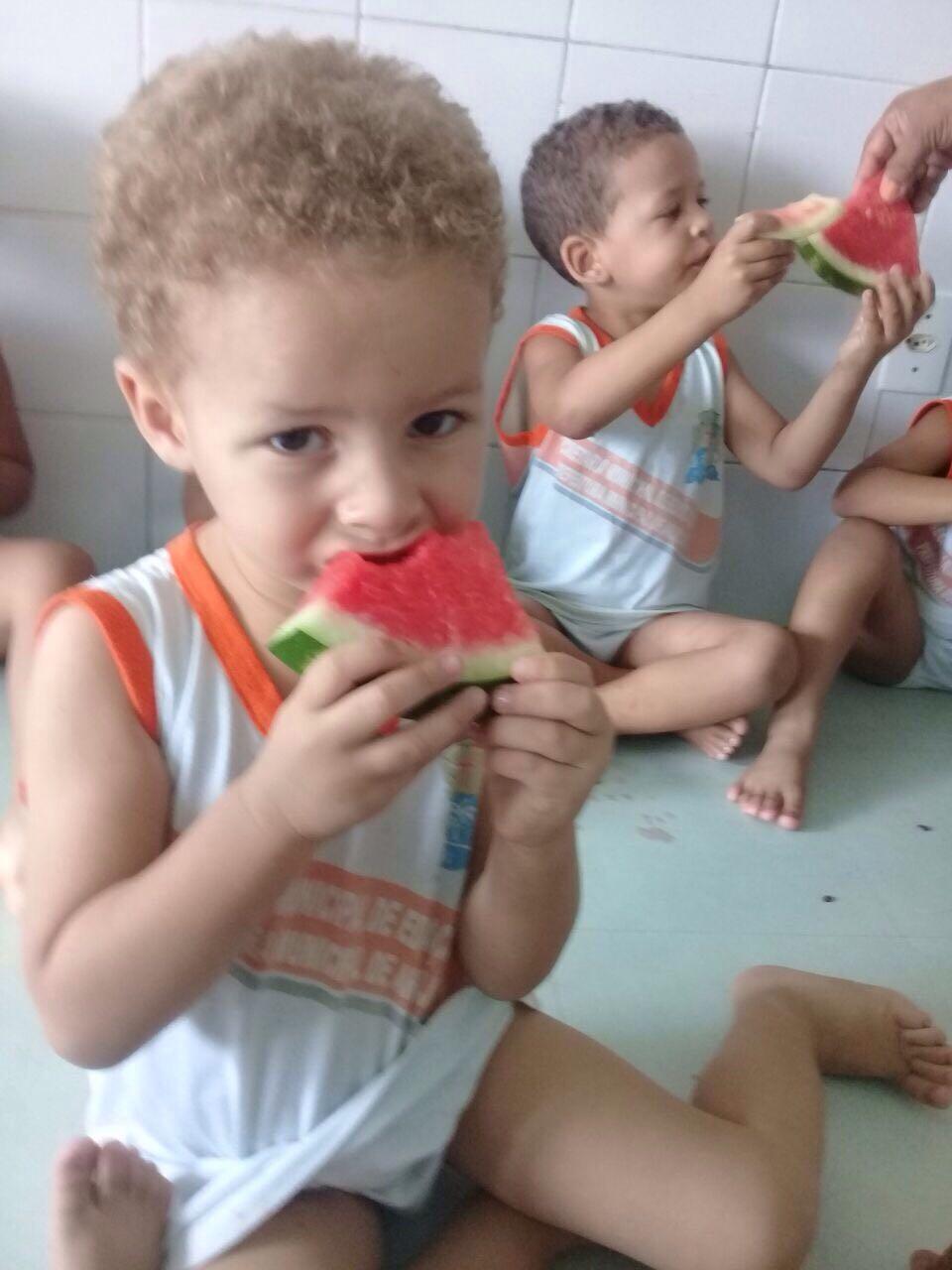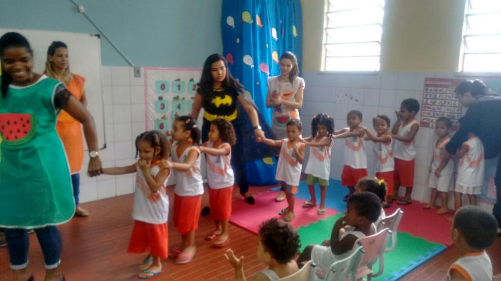 A cuidadora Geisiane da Silva, da Emei Pierri Averan, se diverte em contar como foi a atividade 'Teatrinho das Frutas', desenvolvida em parceria com a equipe da Unidade de Saúde da Família (USF) do Bairro Santo Antonio. “Foi engraçado e muito produtivo. As profissionais e saúde da Unidade se vestiram de frutas e se apresentaram através de encenações, danças e conversas. As crianças mais pequenas ficaram concentradas e riram bastante, as maiores fizeram e responderam perguntas, brincaram. Foi muito legal ”, conta.
