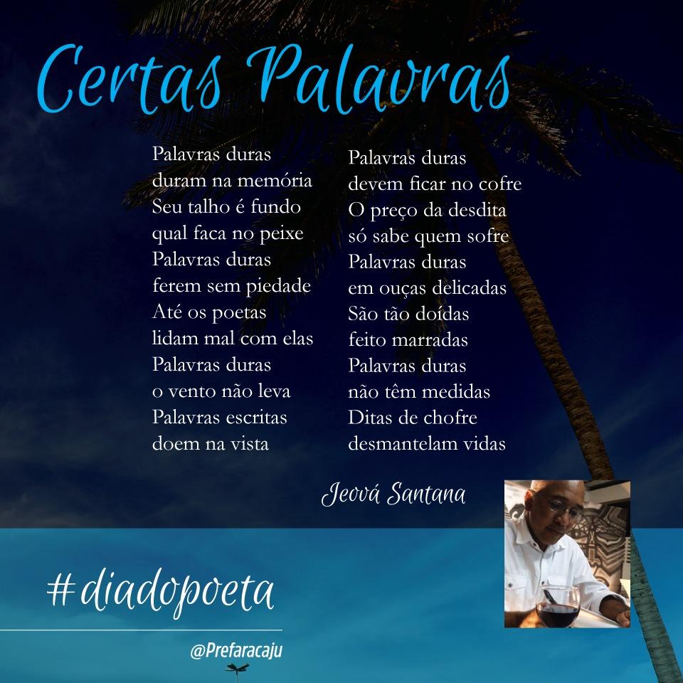 Para o prefeito de Aracaju, Edvaldo Nogueira, que descobriu a poesia ainda na infância, um dia dedicado aos poetas é muito pouco para demonstrar o reconhecimento que a Prefeitura tem por eles. "A poesia é alimento para a alma. Desde que ganhei o primeiro livro da minha mãe, ainda criança, descobri o agigantamento do mundo através da literatura. Essa iniciativa da Prefeitura de Aracaju de homenagear os nossos poetas e poetizas, trovadores das palavras que nos brindaram e continuam brindando com um indefectível talento, é muito positiva. Parabéns pelo Dia do Poeta. Bravíssimos", enalteceu.