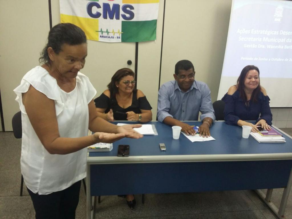 A secretária municipal da Saúde, Waneska Barboza, continuando a política de valorização do controle social da Secretaria Municipal da Saúde (SMS), participou da reunião do Conselho Municipal de Saúde (CMS), onde apresentou as ações desenvolvidas pela gestão no período de junho a outubro deste ano. O encontro aconteceu nesta quarta-feira, 25, na sede do CMS, junto aos conselheiros gestores, trabalhadores e usuários do Sistema Único de Saúde (SUS) de Aracaju.