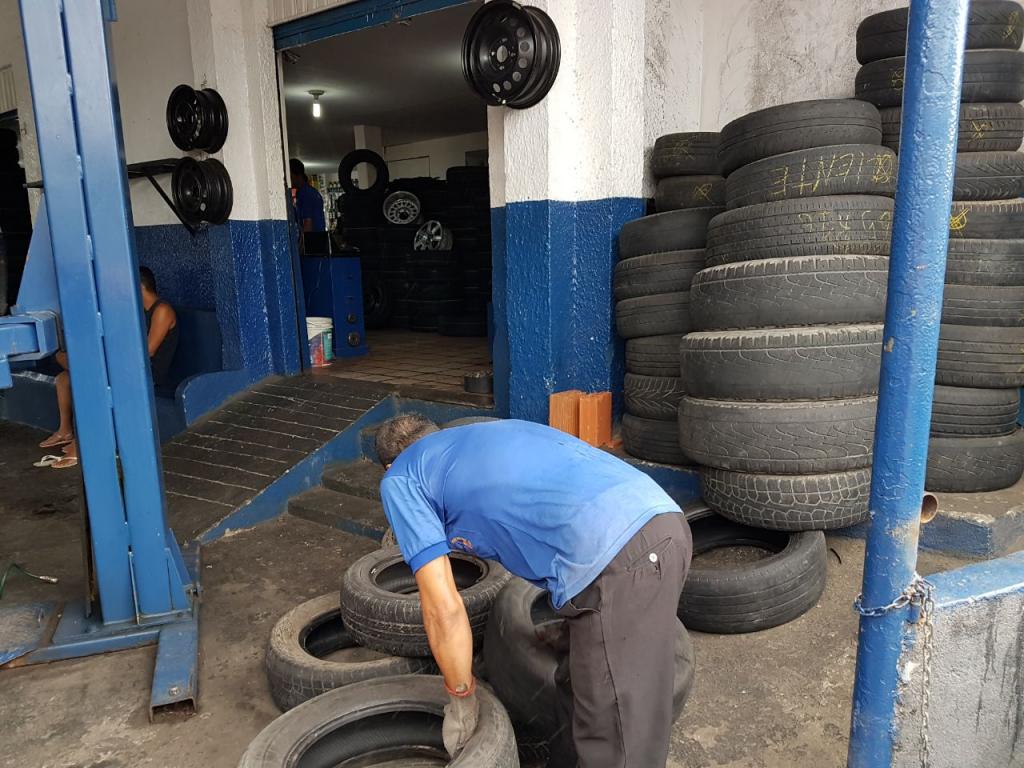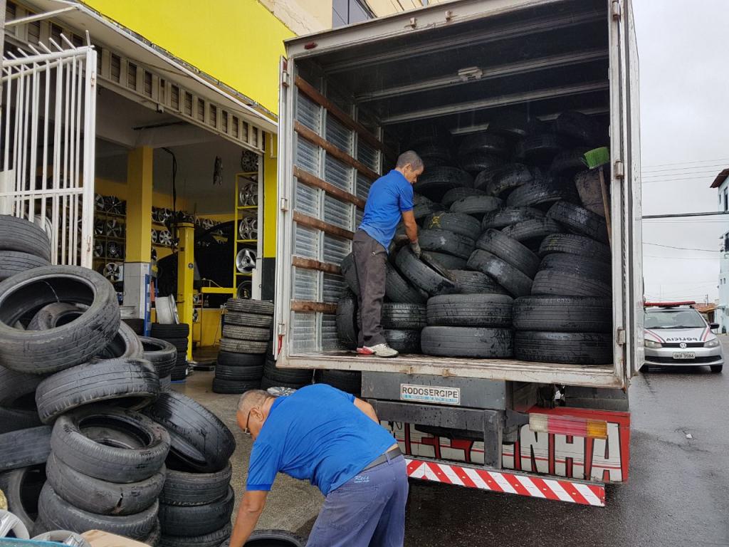 Os pneus têm grande potencial para a proliferação do Aedes aegypti, e é por isso que é importante que eles tenham uma destinação correta. A coleta acontece de segunda a sexta-feira em locais previamente cadastrados, como borracharias, ferros-velhos e lojas de revenda de pneus. “Esse é um trabalho de prevenção que realizamos para evitar que esses pneus sejam descartados em locais indevidos e, desta forma, acumulem água parada facilitando o desenvolvimento do mosquito. Por semana, nós retiramos do meio ambiente mais de mil pneus, e todo esse material fica armazenado em um galpão da Emsurb até que a empresa de reciclagem conveniada venha fazer a retirada para dar o destino final”, explicou o agente de endemias e supervisor da coleta, Vicelmo dos Santos.