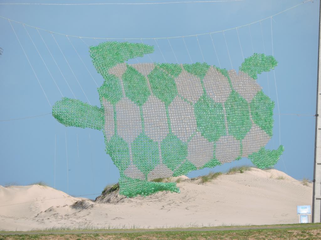 Além da escultura de areia, a exibição do monumento gigante de uma tartaruga feita com garrafas pet chamou a atenção dos visitantes que passeavam pelos lagos da Orla, como foi o caso do professor Telmo Oliveira. "Passeando com a família, avistei esse monumento que me chamou bastante atenção. Acabei vindo até ele e fiquei encantado com essa arte. A Sema está de parabéns em promover esses tipos de ações. Que elas sirvam para melhorar o pensamento do cidadão quanto às suas práticas", diz Telmo. A programação se encerrou no fim da tarde com uma soltura de tartarugas em parceria com o Projeto Tamar.