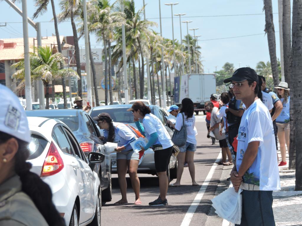 As atividades que aconteceram no turno da manhã se iniciaram com uma blitz educativa nas proximidades dos Arcos da Orla. Com o apoio da Superintendência Municipal de Transporte e Trânsito (SMTT) e da Mix FM, os motoristas que transitavam pelo local foram abordados e orientados pela equipe da Sema sobre a importância da conservação das praias.