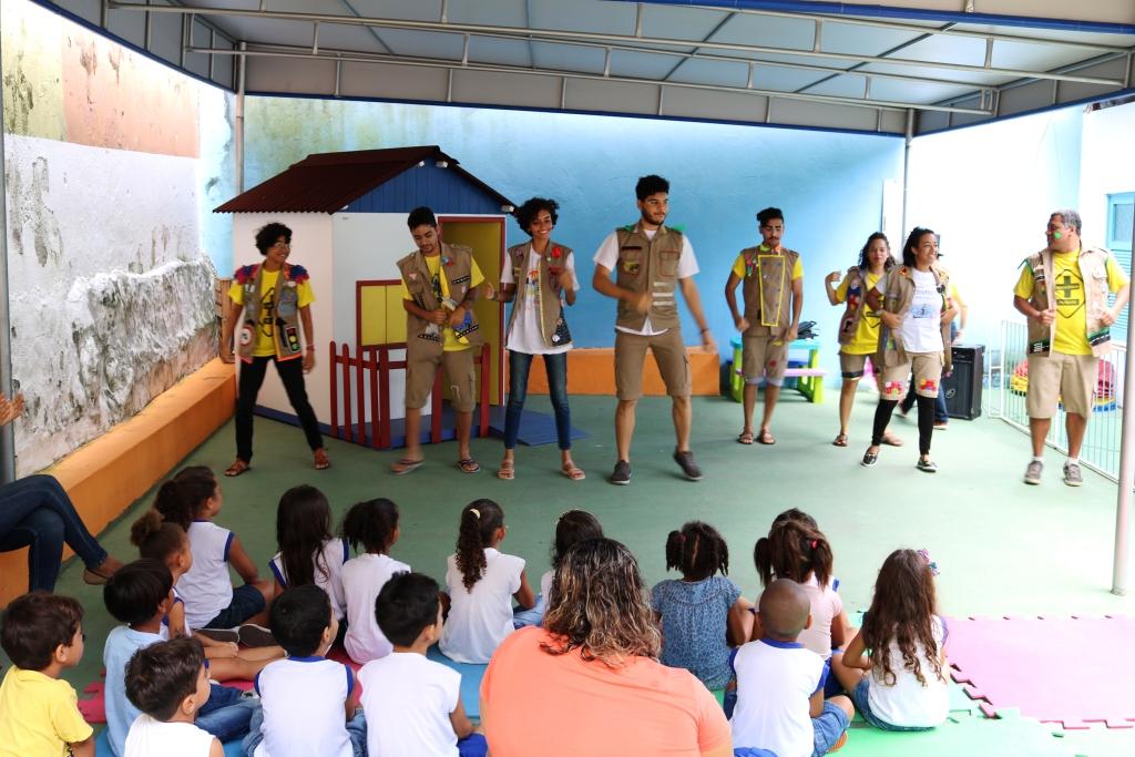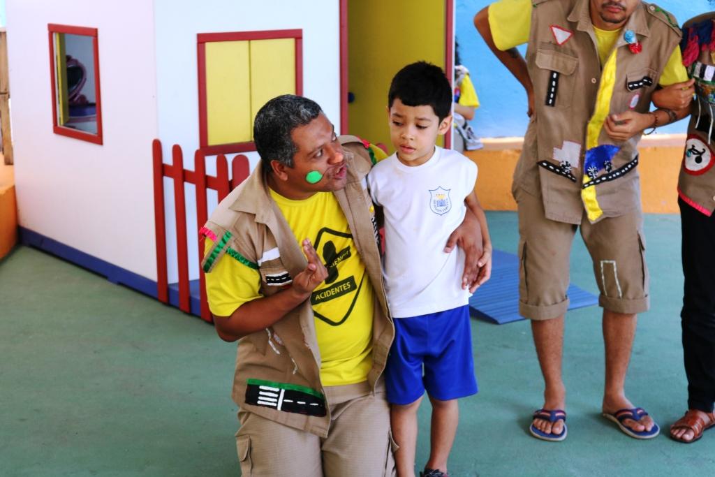 A apresentação do Grupo Cones de Teatro encantou a garotada. Os atores abordaram temas para o conhecimento das crianças, como a importância de atravessar na faixa de pedestres, de ficar atento à movimentação nas vias e do uso da cadeirinha em automóveis.